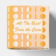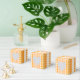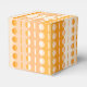 Circles and Stitches on stripes in various shades of orange from dark carrot to pastel peach. Other types of gift boxes with this design available as well as other colours.