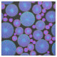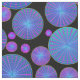 Groovy psychedelic pattern in neon colours. A vibrant design with both big and small round wheels containing concentric rings with spokes. Colours include vivid bright pink, sky blue, turquoise blue, violet and purple. Has a wonderful sense of motion, movement and fun.