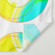 Rings rotate within rings over vivid yellow, aqua and red circles on a white background.