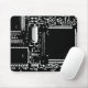 Modern design featuring a close up of a computer circuit board in black, grey and white. Mousepad with a customisable design for you to personalise with your own text, pictures and ideas. Created using an original photograph and digital techniques by Jess Perry.