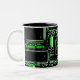 Modern design featuring a close up of a computer circuit board in green, black and white, and your initials in green. Mug with a customisable design for you to personalise with your own text, pictures and ideas. Created using an original photograph and digital techniques by Jess Perry.