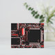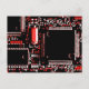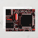 Modern design featuring a close up of a computer circuit board in red and black. Postcard with a customisable design for you to personalise with your own text, pictures and ideas. Created using an original photograph and digital techniques by Jess Perry.