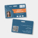 Establish a commanding and professional presence at your next tech summit with this sleek, customizable Event Director photo ID badge. Designed specifically for the high-stakes environment of technology conventions, this horizontal credential features a striking modern circuit-board aesthetic that instantly identifies your leadership team. The intuitive layout allows you to maintain total brand consistency by uploading your official event logo, a high-resolution professional headshot, and up to three prominent sponsor logos directly onto the front of the card. Shown in a blue, orange, and white palette, but all colors are editable to match your branding.