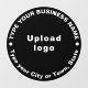 Window cling with your business logo and circular pattern texts of your business name, city or town and state. Customise it and display it as marketing material to advertise your business or to promote your brand name to customers or clients. Customisable window cling that you can use to build brand name awareness. Design colours are white texts on black background. Please check the appearance after uploading logo and typing texts. If the appearance is pleasing to you, you can place your order now. If you need to resize and move the logo and texts to fit on this window cling or on the size and shape that will choose, please change in the design tool. You can also change the background colour, font colour and font style in the design tool.