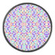 Circular item with a vibrant, symmetrical purple hockey puck