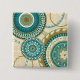 © Veronique Charron / Wild Apple. This image of circular patterns feature blue and gold colours. The image has a tan coloured, floral patterned background.