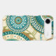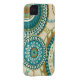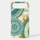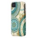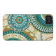 © Veronique Charron / Wild Apple. This image of circular patterns feature blue and gold colours. The image has a tan coloured, floral patterned background.
