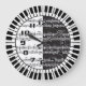 An eye-catching, modern and stylish musical keyboard design in black and white with piano keys in a circular shape to create a border around the musical score. An ideal contemporary music gift for the pianist, music lover or musician.