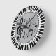 An eye-catching, modern and stylish musical keyboard design in grey, black and white with piano keys in a circular shape to create a border around musical notes. An ideal contemporary music gift for the pianist, music lover or musician.