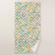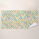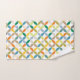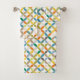 Bold graphic towel set featuring shades of warm orange, golden yellow, green, blue, brown and white in a circles style design. Ideal for adding some interest in your bathroom, great to mix and match with white towels or another colour towel in the pattern. This design has plenty of different warm tones colours to help with your colour co-ordination. Designed by Sarah Trett for www.myittleeden.com