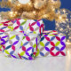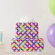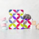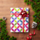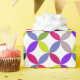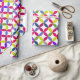Everyday circular quarters style patterned wrap ideal for birthdays or other occasions. Wrapping paper in a bold red, lime green, purple, blue, grey and white hues. Designed by Sarah Trett.