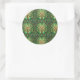 "Circular sticker design featuring a repeating pattern of stylized trees with lush green leaves and small red fruits on a dark background. The vibrant, symmetrical design evokes a sense of nature and harmony. Five stickers are shown in a grid below the main image."