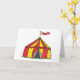 Circus Big Top Tent design features a red and yellow striped big top circus tent with flaps open - welcoming the audience to the next show. A flag flies above the tent with "Big Top" on it. Fun circus graphic design.