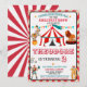 Step right up to this vintage circus birthday invitation! Features classic big top tent, circus animals (elephant, lion), strongman & clown. Perfect for boys or girls circus-themed birthday parties. Retro carnival style with red & white stripes. Great for kids birthday celebrations with a vintage circus atmosphere.