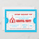 A fun design welcomes guests to step right up for the main event! In the form of an admission ticket, this invitation features a cute elephant atop the big top circus tent and contains all the event info in an easy to customise format. A great way to build the excitement of your guests as they anticipate the carnival or circus themed birthday celebration that's planned for your son or daughter!