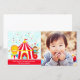 Circus themed birthday party invitation. It features a cute lion, a little monkey and a top circus tent. Personalise it with your message and little girl's name. Some elements by Grafos.