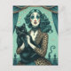 A circus clown in a cheetah print jacket holds a black cat AI generated art