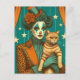 A cute circus clown wearing animal print jacket and holding a ginger kitty AI generated art