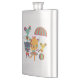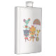 The product is a good size and came exactly as it was pictured. The lid is not attached to the flask, which could be dangerous on drunken nights... The print came out surprisingly well and looks very sharp. Would definitely recommend.