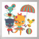 Our Circus Cuties design is a cute, fun design for people of every age who love the circus! Features two cats with tutus dancing beneath a striped umbrella, and a mouse with hula hoop and ball! Circus theme T-shirts, bibs, burp cloths, blankets, cards, stickers, mugs, key chains, mousepads, magnets, bags, and much more!