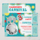 Fun circus elephant wearing a birthday hat balancing over a ball template for photo insert with bright blue, dusty blue, red, and yellow polka dot print and raffle tickets at side. Just perforate the sides for an easy tear off!