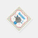 Cute birthday design with a retro circus elephant balancing on a ball. Fun polka dot background. Customisable text to personalise with your own custom message and year. PinkInkArt original!