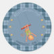 Cute blue reward sticker for young students featuring a cartoon circus monkey hanging on a trapeze . Personalize it with your praise quote and with the teacher's name . Look into our collection for additional options .