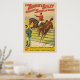 Vintage Barnum & Bailey circus poster showing two ponies, one with rider, jumping over an obstacle, circa 1898.