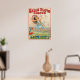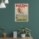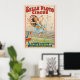 Vintage Sells Floto circus poster showing tight-rope walker M'lle Beeson prancing with a parasol, circa 1921.