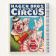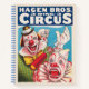 Vintage Hagen Brothers circus poster showing clown faces and fire cracker.