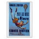 Cirque dʹHiver...Tous les soirs, à 8 heures. French circus poster shows an aerialist floating with arms outstretched above a city skyline with a balloon in the background.