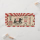 Fun vintage circus baby shower ticket invitations. Raffle ticket attached. Red big-top burst pattern, elephant and ringmaster vintage artwork on back. Easy to customise.