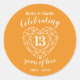 Citrine celebrating 13 years of love anniversary stickers. Simple outline heart stone effect line art graphics orange and white 13th Wedding Anniversary round stickers. Customise with your own thirteenth wedding anniversary party details. The 13th wedding anniversary is associated with the gemstone citrine and the heart symbolises love. Graphics and design by Sarah Trett for www.mylittleedenweddings.com on zazzle.