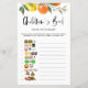 Try and guess the children's books using only emojis. The person with the most correct answers wins! | Add these fun and playful emoji pictionary game card to your baby shower. This customisable children's book game card features watercolor illustrations of lemon and oranges. Personalise by adding your own details. This citrus emoji pictionary game card is perfect for summer bridal showers and baby showers.