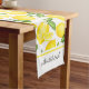 This design features a botanical citrus lemon pattern that allows you to add your family name at both ends of the runner.