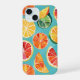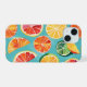 This artwork showcases a lively and refreshing pattern of citrus fruits, featuring vibrant slices of oranges, lemons, limes, and grapefruits against a bright turquoise background. The juicy, colourful fruit slices are depicted with a playful and stylised approach, capturing the essence of summertime and freshness. The use of bold, contrasting colours and the circular arrangement of the fruits create a dynamic and eye-catching composition that exudes energy and zest.