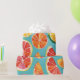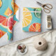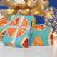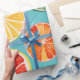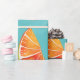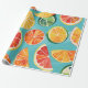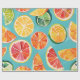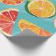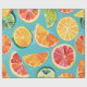 This artwork showcases a lively and refreshing pattern of citrus fruits, featuring vibrant slices of oranges, lemons, limes, and grapefruits against a bright turquoise background. The juicy, colourful fruit slices are depicted with a playful and stylised approach, capturing the essence of summertime and freshness. The use of bold, contrasting colours and the circular arrangement of the fruits create a dynamic and eye-catching composition that exudes energy and zest.