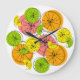 A mid century inspired design with a retro touch featuring stylised citrus fruit slices - orange, lemon, lime and pink grapefruit, on a white background. A customisable design for you to personalise with your own text, images and ideas. An original digital art image created by Jess Perry at QuirkyChic Retro.