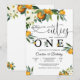 Celebrate your little ones milestone with this charming citrus floral first birthday invitation. Featuring watercolor oranges, lush greenery, and delicate white blossoms, this design blends whimsical elegance with fresh summer vibes. Perfect for baby girl or boy parties, it sets the tone for a joyful gathering. Customize with your childs name, party details, and RSVP information to create a keepsake guests will love. Ideal for summer birthdays, rustic celebrations, or "little cutie- themed events.