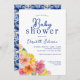 Citrus Floral Lemon Blue Tile Baby Shower Invitation