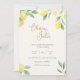 Fresh and elegant lemon wedding invitation featuring watercolor citrus greenery in soft yellow and citrus green on a warm ivory background. The front showcases the couple’s names and wedding details, while the back includes a customizable photo frame and initials for an engagement or couple picture. Easily personalize all text, upload your own photo for a classic double‑sided design, perfect for citrus, “main squeeze,” summer, garden, or Italian‑inspired weddings.