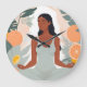 Immerse yourself in tranquillity with this minimalist illustration of a serene woman in meditation, surrounded by vibrant citrus fruits and lush tropical leaves. The soft, earthy tones create a calming atmosphere, perfect for bringing a touch of nature and peace into any space.