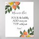 Momosa Bar sign featuring an illustration of lovely greenery and citrus fruits with the words Momosa bar in a fun calligraphy script. Or edit the heading to say Mimosa Bar for a Bridal Shower. Matches our Citrus Love Collection.