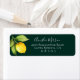 Watercolor lemon and leaves, emerald green return address label. Personalise/Customise text, font style, colour and size.
