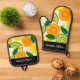 Citrus Pattern Green Orange Lemon Personalised Oven Mitt & Pot Holder Set