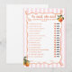 Introducing our enchanting Spritz themed 'He said, she said' game card, designed to make your special day even more memorable. This design features an orange hand-drawn doodle frame on a soft pink striped background. Adorning the frame are watercolor oranges, as well a hand drawn, whimsical orange slice, adding a touch of playful elegance to the design. The handwritten font beautifully complements the artistic frame, creating a cohesive and charming look that will captivate your guests from the moment they see it.