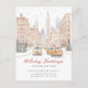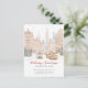 This festive Christmas holiday moving announcement features the saying "Holiday Greetings from Our New Home" with a beautiful watercolor city scene with scattered Christmas trees. The announcement is perfect for sending to friends and family during the holiday season to let them know about your new address. The front of the announcement features the saying and the watercolor snowy city street scene, and includes your new address and contact information. The overall design is festive and charming, and the announcement is sure to put a smile on the faces of your loved ones.