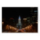 This is City Hall in Philadelphia, Pennsylvania. The photo was taken looking southeast down the Benjamin Franklin Parkway. The Ben Franklin Parkway runs from the Philadelphia Museum of Art at one end to Love Park and City Hall at the other and is lined with the flags of many countries from around the world. Philadelphia City Hall is a gem of cityscape architecture, and the building looks beautiful lit up at night. It is topped with a statue of William Penn, and until the mid-eighties, it was the tallest building in Philly. City Hall is at the heart of downtown Philadelphia, also known as Centre City.