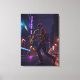 A stunning modern canvas print featuring a jazz saxophonist performing under neon city lights. This vibrant geometric artwork captures the soul of urban rhythm and artistic expression.