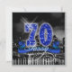 This classy design features a giant, blue faux-glitter '70', script text 'Sassy' and ribbon banner over a black and white photograph of a bright city skyline reflected on water. Specify your event details on the back using the custom template. Search ID191 to see other ages and more products with this design.